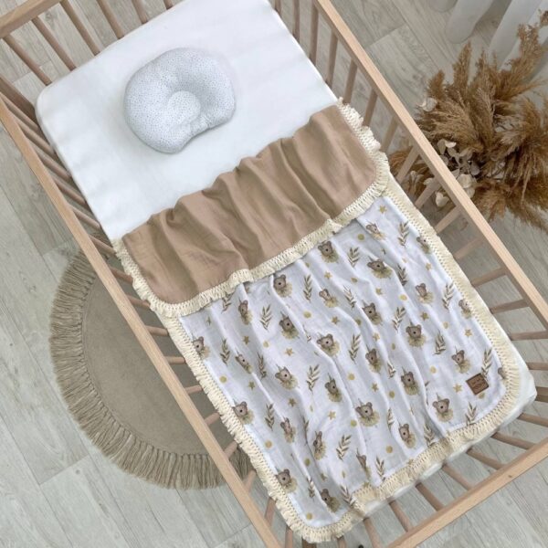La coperta è progettata per essere tanto bella quanto piacevole al tatto. Adatta per le stagioni piu calde, leggera e traspirante per evitare il surriscaldamento nei mesi più caldi. Con la sua versatilità, è perfetta come coperta da carrozzina, fasciante o per l’uso in auto, passeggino, lettino o culla. Utilizzabile da 0 fino a 3 anni d’età.